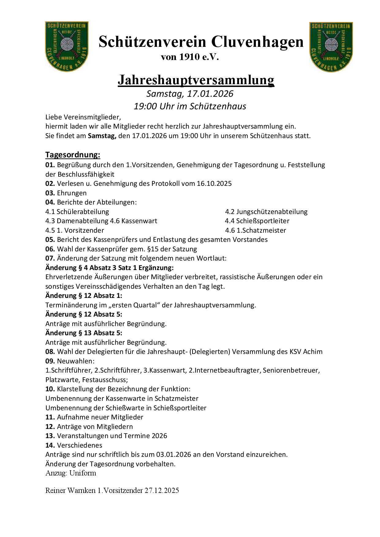Ergebnisse Vereinsmeisterschießen Kleinkaliber 2025